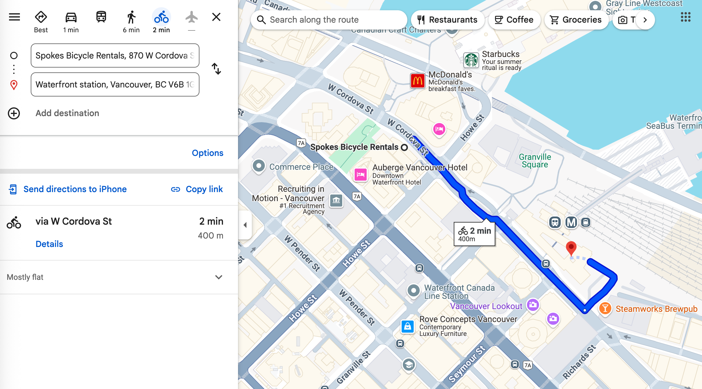 🚲Spokes Bicycle Rental WATERFRONT location (870 Cordova) – 604-688-5141 – 8am-9pm